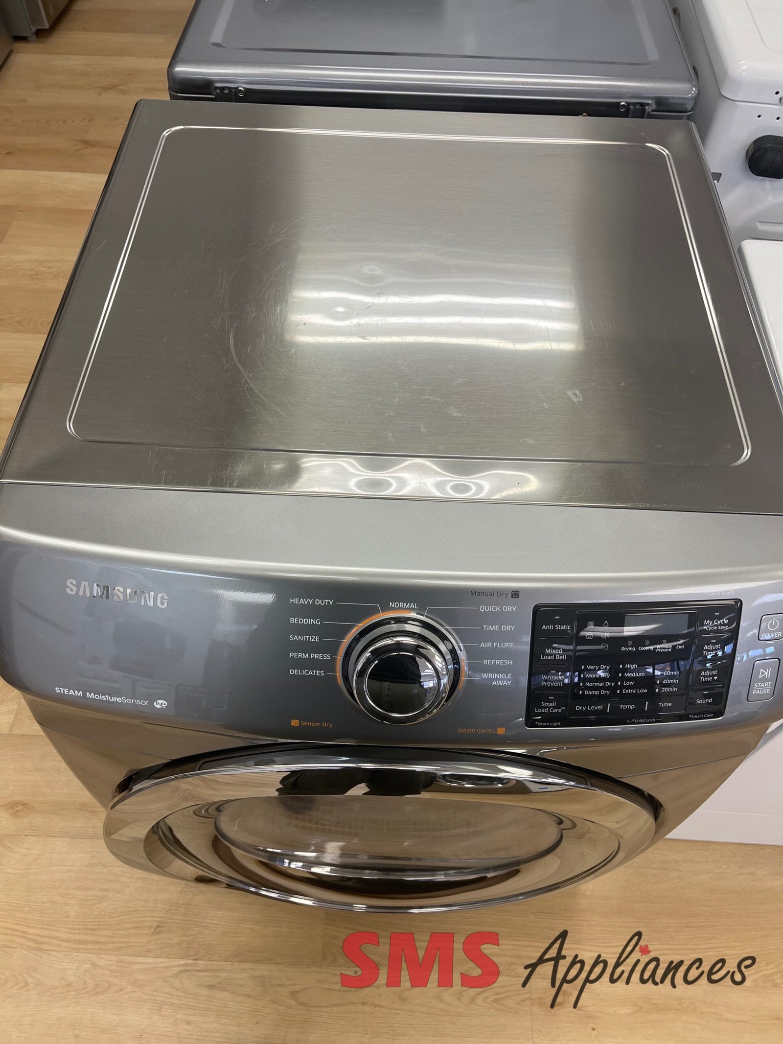 - 11 Preset Drying Cycles: Offers a variety of cycles including Refresh, Wrinkle Away, Sanitize, Normal, Heavy Duty, Permanent Press, Bedding, Delicates, Time Dry, Air Fluff, and Quick Dry to suit different fabric types and drying needs.